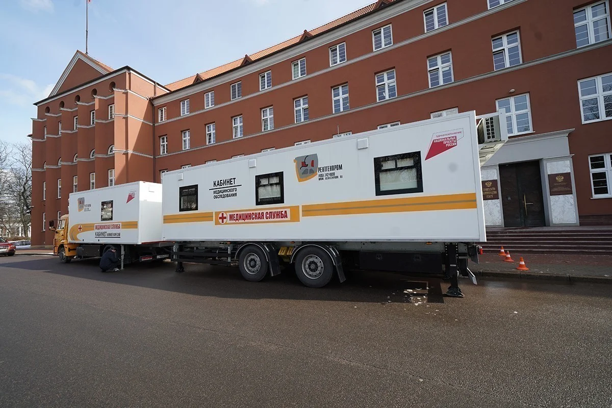 Осенью 2020 года в регион поступили рентген-кабинет для Гусевской центральной районной больницы, мобильный центр «детское здоровье» для Городской детской поликлиники № 6, передвижной кабинет для Советской стоматологической поликлиники и маммограф для Черняховской ЦРБ. Средства на их приобретение в размере 67,7 миллионов рублей были направлены из федерального и регионального бюджетов.