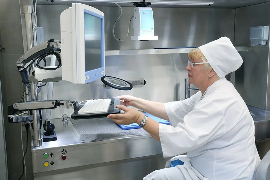 Два этажа здания занимает современный диагностический комплекс, включающий гистологическую и цитологическую лаборатории. «Новейшее современное оборудование будет анализировать такие серьезные исследования, поступающие со всего региона, как гистология, и в разы сократит сроки ожидания их результатов, которые раньше люди ждали по 3-4 месяца, а то и больше, - подчеркнул Алексей Силанов. - При этом работа здесь выстроена таким образом, что умная техника нового диагностического комплекса позволит исключить человеческий фактор, повысив точность результатов исследования».