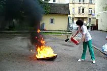 По окончании мероприятия состоялось практическое занятие для персонала больницы по тушению пламени с помощью огнетушителей.
